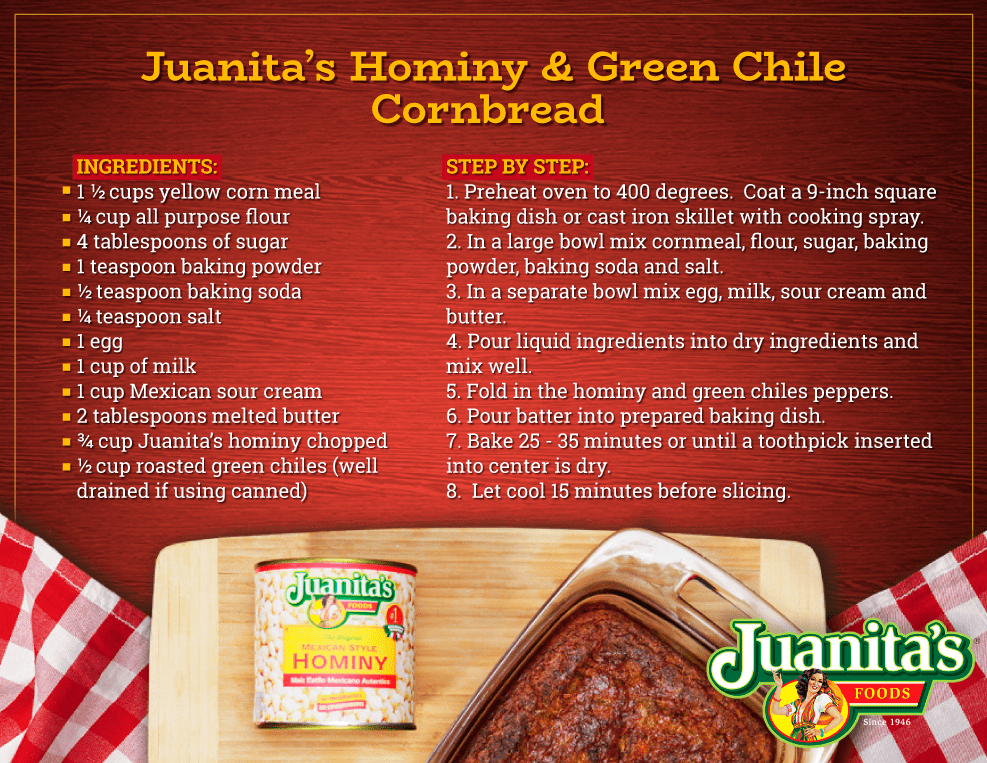 - ¾ cup of Juanita’sⓇ Hominy chopped